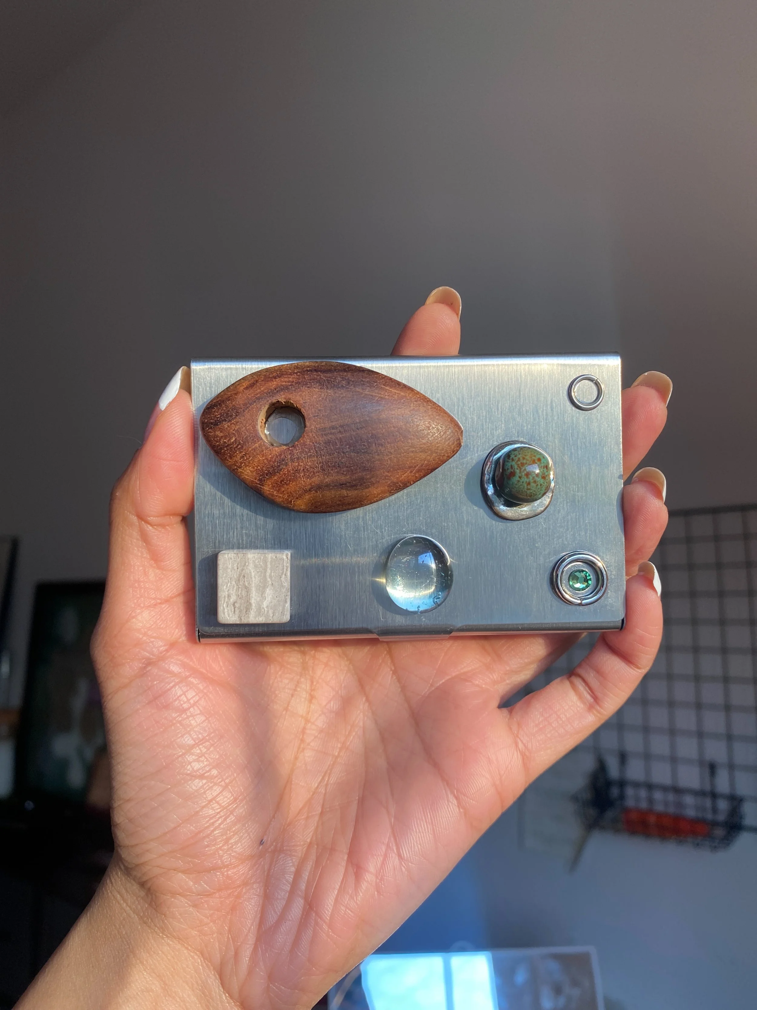 A versatile stainless steel card wallet. Can fit up to 4 cards. Reflective interior masquerades as a mirror for on the go.